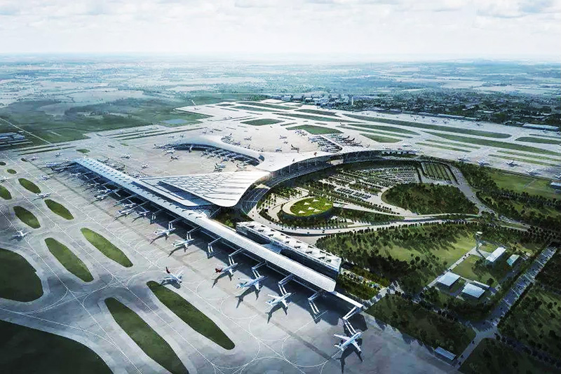天津?yàn)I海國際機(jī)場擴(kuò)建配套交通中心工程位于天津市東麗區(qū)天津?yàn)I海國際機(jī)場T1航站樓北側(cè)進(jìn)出港廣場及其東側(cè)的空地下,該工程總投資22.4億元,總建筑面積11.28萬m2,是集航空、高鐵、市域快軌、地鐵、公交、出租等多維立體交通于一身的大型地下交通樞紐。
