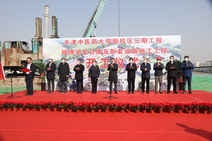 2022年3月3日,在一片彩旗飄揚(yáng)和熱烈的歡呼中,由天津三建建筑工程有限公司總承包施工的天津中醫(yī)藥大學(xué)新校區(qū)三期工程碩博學(xué)生公寓及配套設(shè)施工程舉行了簡約而隆重的開工典禮儀式。該工程總建筑面積4.45萬平方米,由碩博學(xué)生公寓及附屬用房等十二個(gè)樓座組成,該工程的開工建設(shè),瞄準(zhǔn)國家實(shí)施建設(shè)世界一流大學(xué)和一流學(xué)科建設(shè)的“雙一流”總體戰(zhàn)略,弘揚(yáng)中醫(yī)文化和中醫(yī)醫(yī)學(xué)走向世界提供有力支撐。