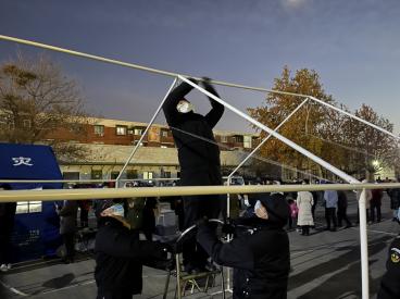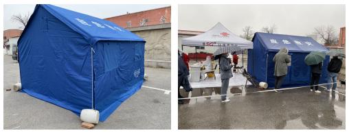 11月29日,蝶橋公寓社區(qū)按照市里統(tǒng)一安排開展核酸篩查工作,由于天氣溫度急劇下降,大直沽街道和社區(qū)領(lǐng)導(dǎo)購買帳篷送到天津三建公司核酸采樣點(diǎn),為戰(zhàn)嚴(yán)寒,奮戰(zhàn)在防疫防控一線的工作人員遮風(fēng)擋雨。但是帳篷送到天津三建公司核酸采樣點(diǎn)后沒有安裝人員,這可叫社區(qū)大篩工作人員犯了難。天津三建公司黨委得知此情況后,命令后勤保障部立即投入到帳篷的搭建工作中,由于沒有圖紙,工作人員通過不停地研究和探索,將帳篷終于搭建成功!最后又找來繩子和重物將帳篷加固固定,使得在大風(fēng)天氣帳篷仍然屹立不倒。隨著帳篷的搭建成功,三建公司采樣點(diǎn)立刻又開通了一條核酸檢測采樣通道,加快了核酸采樣速度,使得居民不用再寒風(fēng)里等候太長的時間,核酸檢測人員也不會因為手凍僵了拿不穩(wěn)采樣拭子,有了帳篷大家身體上暖和了,心里也暖暖的。