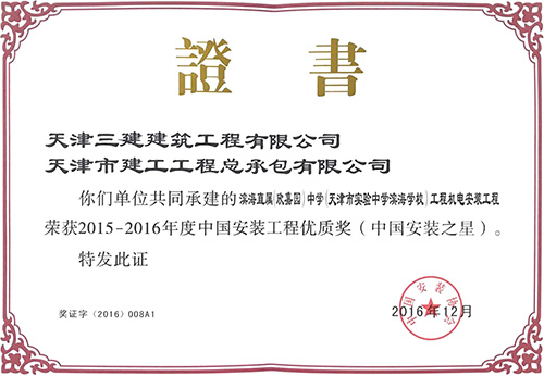濱海直屬(欣嘉園)中學(天津市實驗中學濱海學校)項目總建筑面積62651㎡,框架剪力墻/框架結構。地下一層、地上五層,建筑檐高分別為9.05至22.45mm。機電安裝包括給水排水及采暖、通風與空調、建筑電氣、智能建筑、消防工程。工程于2013年10月10日開工,2015年7月21日竣工。