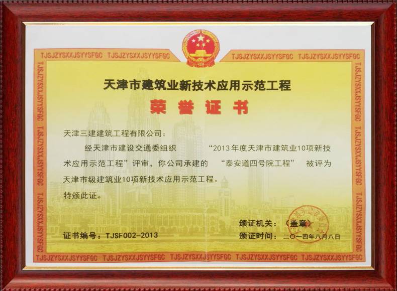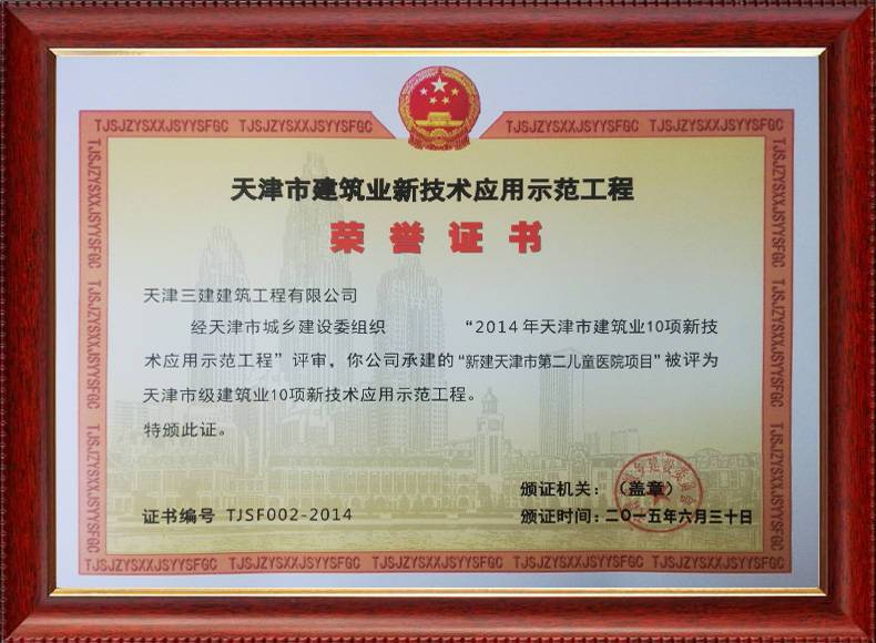 三建公司推廣應(yīng)用住建部十項新技術(shù),創(chuàng)建新技術(shù)應(yīng)用示范工程17項,其中國家級4項,市級10項;創(chuàng)建綠色施工示范工程3項,住建部綠色施工科技示范工程1項,對指導(dǎo)工程建設(shè)、提高工程質(zhì)量安全和施工管理水平發(fā)揮了重要作用。